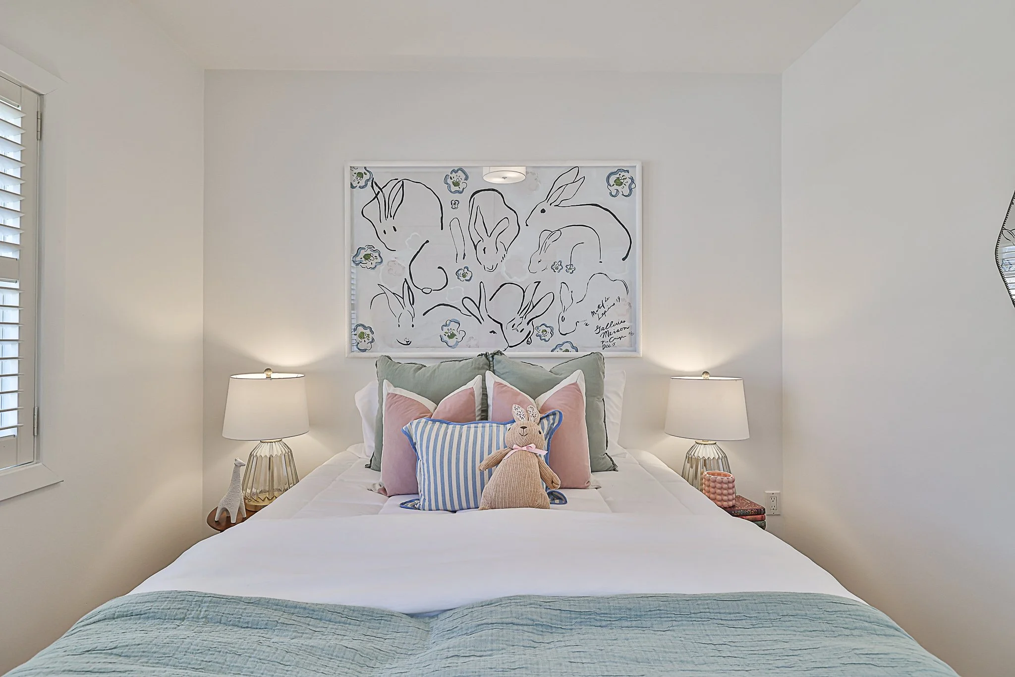 Step into a welcoming foyer that flows into an open-concept living area, where a sophisticated living room with a wood-burning fireplace, an elegant dining space, and a bright family room with custom built-ins set the stage for comfortable, stylish living. The updated eat-in kitchen is a chef's delight, featuring quartz countertops, new stainless steel appliances, and premium finishes. A custom breakfast nook overlooks the lush, professionally landscaped garden—an idyllic space to enjoy your morning coffee.